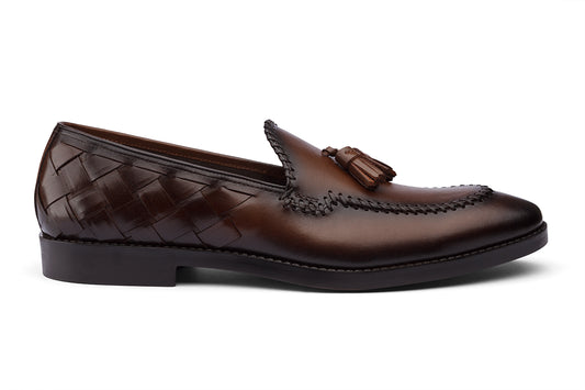 VIENNA - CHESTNUT BROWN HANDWOVEN LEATHER SHOES
