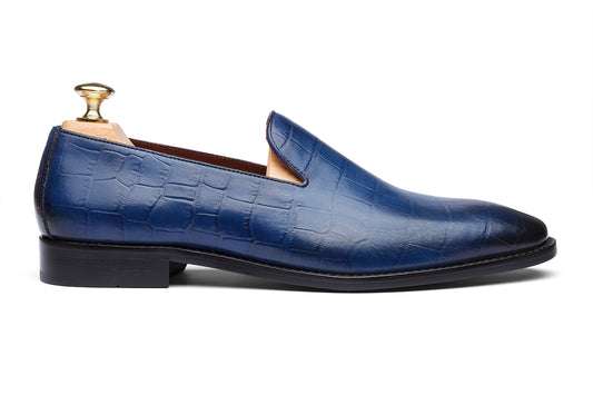 ROTTERDAM - CROCO ROYAL BLUE HAND PATINA LEATHER SHOES