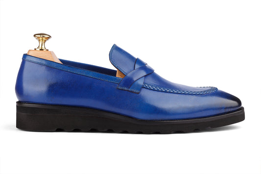 ANSAN - ROYAL BLUE HAND PATINA LEATHER SHOES