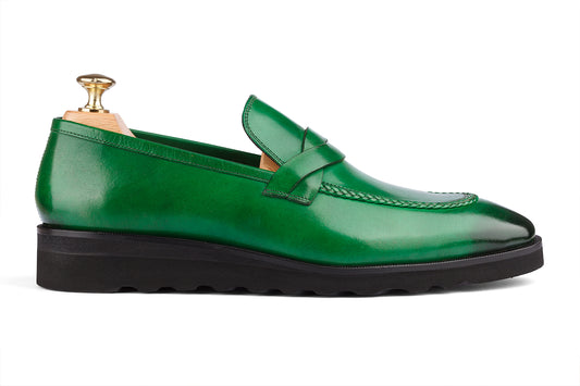 ANSAN - ELECTRIC GREEN HAND PATINA LEATHER SHOES