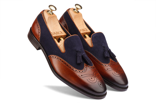 BILBAO - TAN AND BLUE HAND PATINA LEATHER SHOES