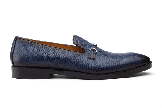 ROTTERDAM - CROCO ROYAL BLUE HAND PATINA LEATHER SHOES