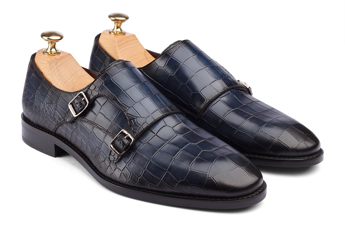 CASABLANCA - NAVY BLUE HAND PATINA LEATHER SHOES