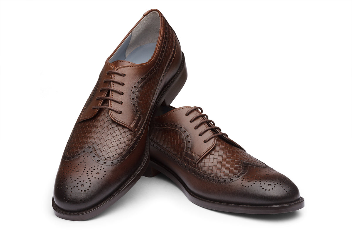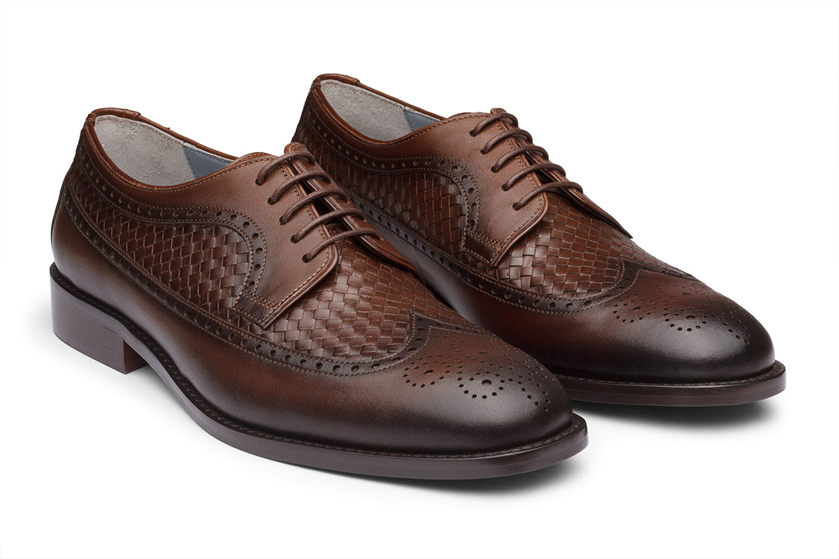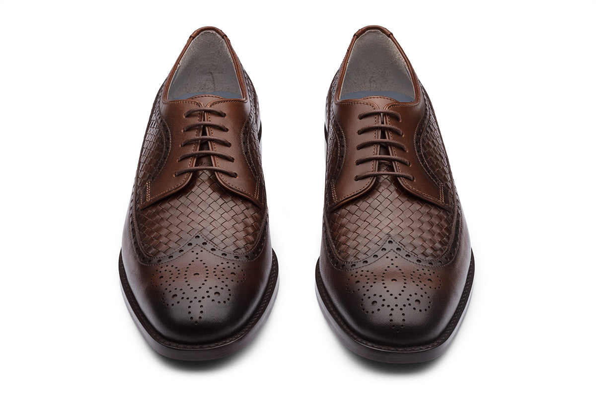 LONDON - CHESTNUT BROWN HANDWOVEN LEATHER SHOES